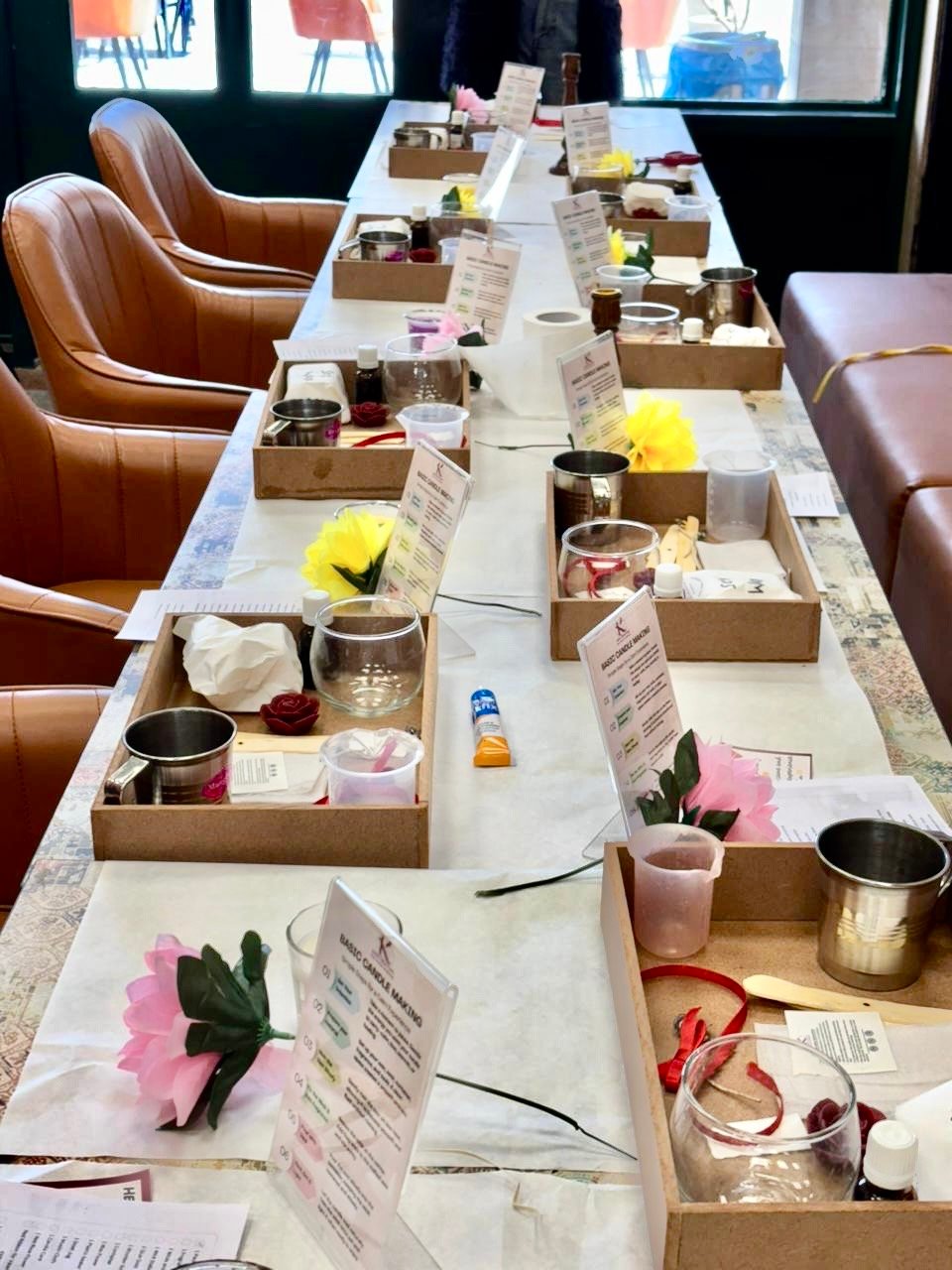For a 3 hour workshop, you can barely finish one candle from beginning to end with all the steps. Understanding the science behind every step is an essential part of the process, hence it takes a long time